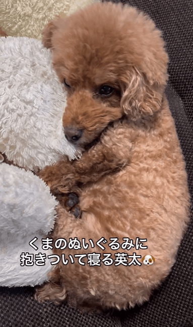 ぬいぐるみに抱きついて寝るトイプーが可愛すぎた!
