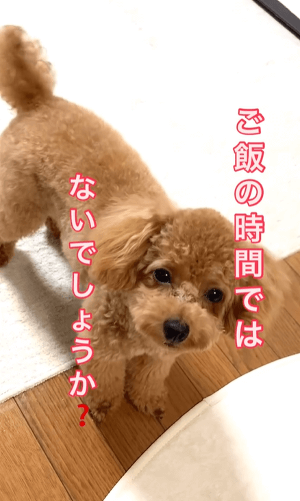 ごはんタイムをアピールするトイプードル
