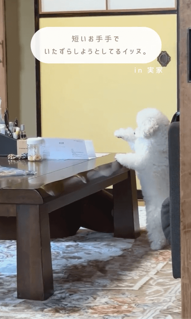 「ぼくの腕の長さなら届くはずっ…!」→届かず。いたずら現場を目撃されたトイプードルがこちら【動画】