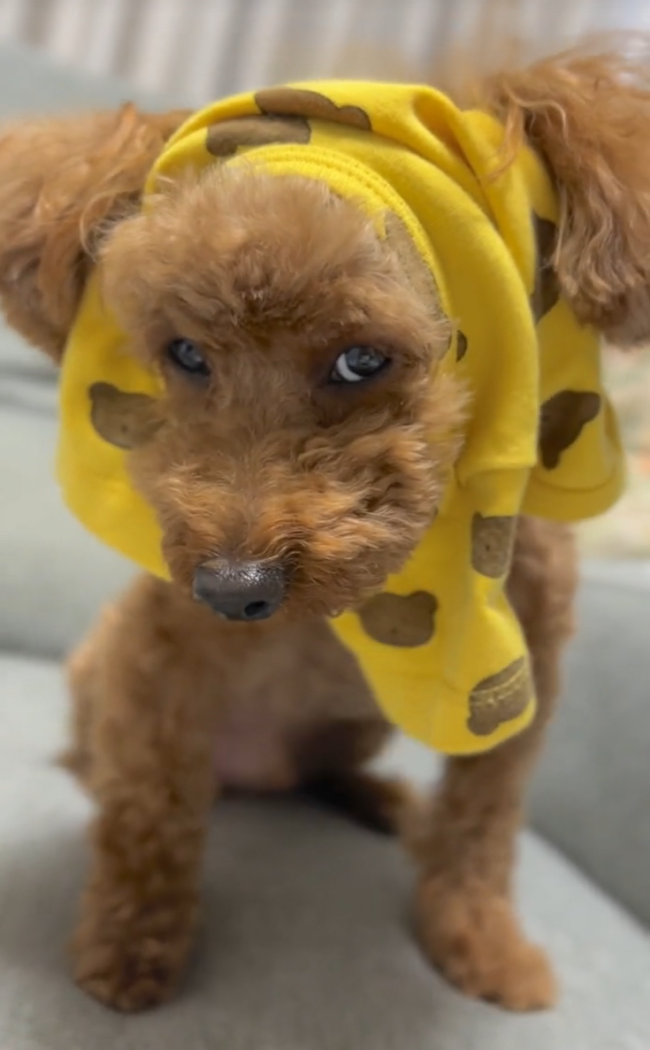 「ちょ、まだ終わってないけど(ジトーッ)」お着替え途中で固まるトイプードル。“抗議のジト目”にジワジワくる【動画】