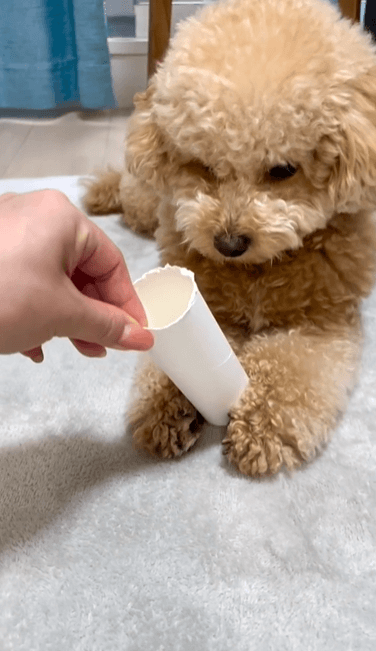 (ギュッ…)お気に入り(トイレットペーパーの芯)をどうしても渡したくないトイプードルが可愛すぎ【動画】