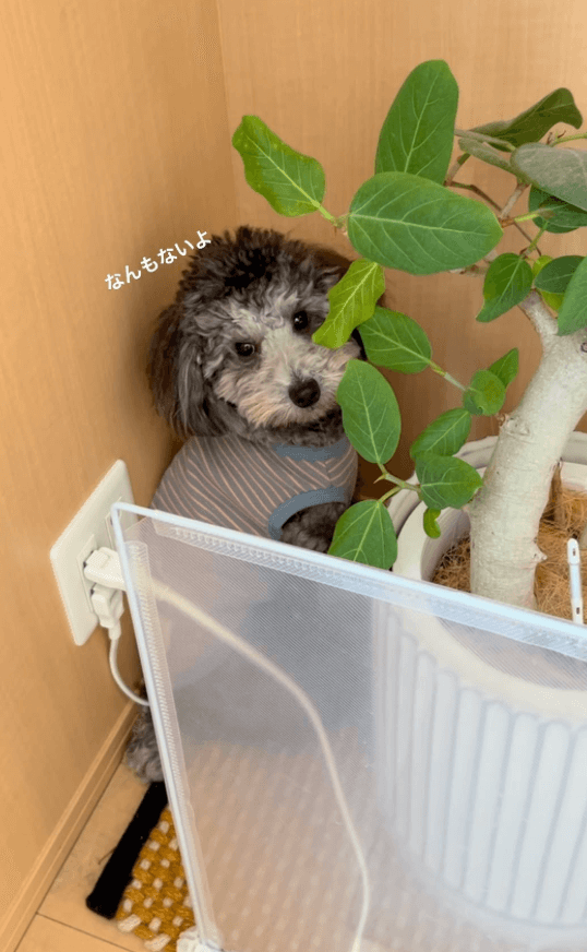 「ん、何もしてないよ」トイプードルが隅っこに隠れていたワケとは…!? 動画のラストに飼い主「やっぱり」【動画】