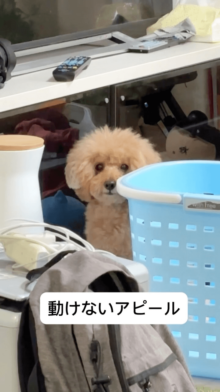 「ママこっち見て!」かまってほしくて…隙間から登場!甘え上手なトイプードルの必殺技がこちら【動画】