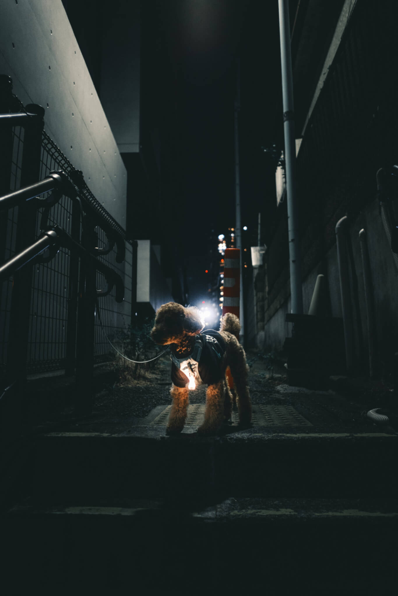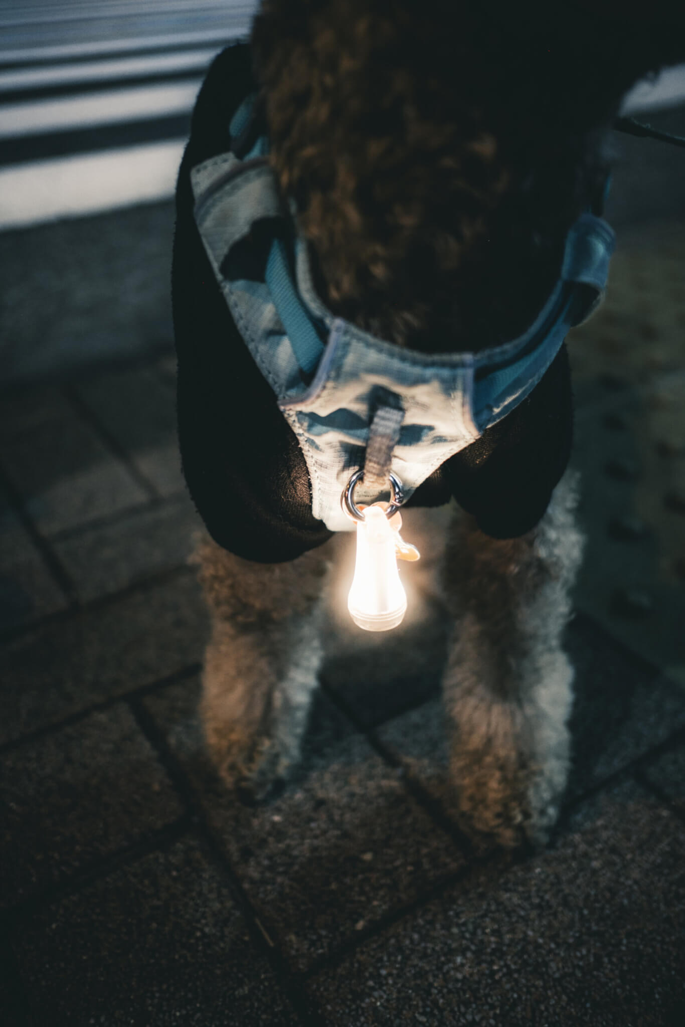 「首輪型のライトだと、けっこう太くて目立ちすぎるものが多いんですよね。でもこのライトは小さくて装着も簡単。プリンも歩きやすそうにしてます。夜でも元気に動き回っていますよ」