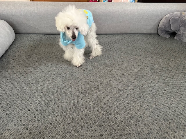 パピー期のころの話になりますが、先生から「フローリングをなくすように」とアドバイスをいただいており、当時から対策をしていました。