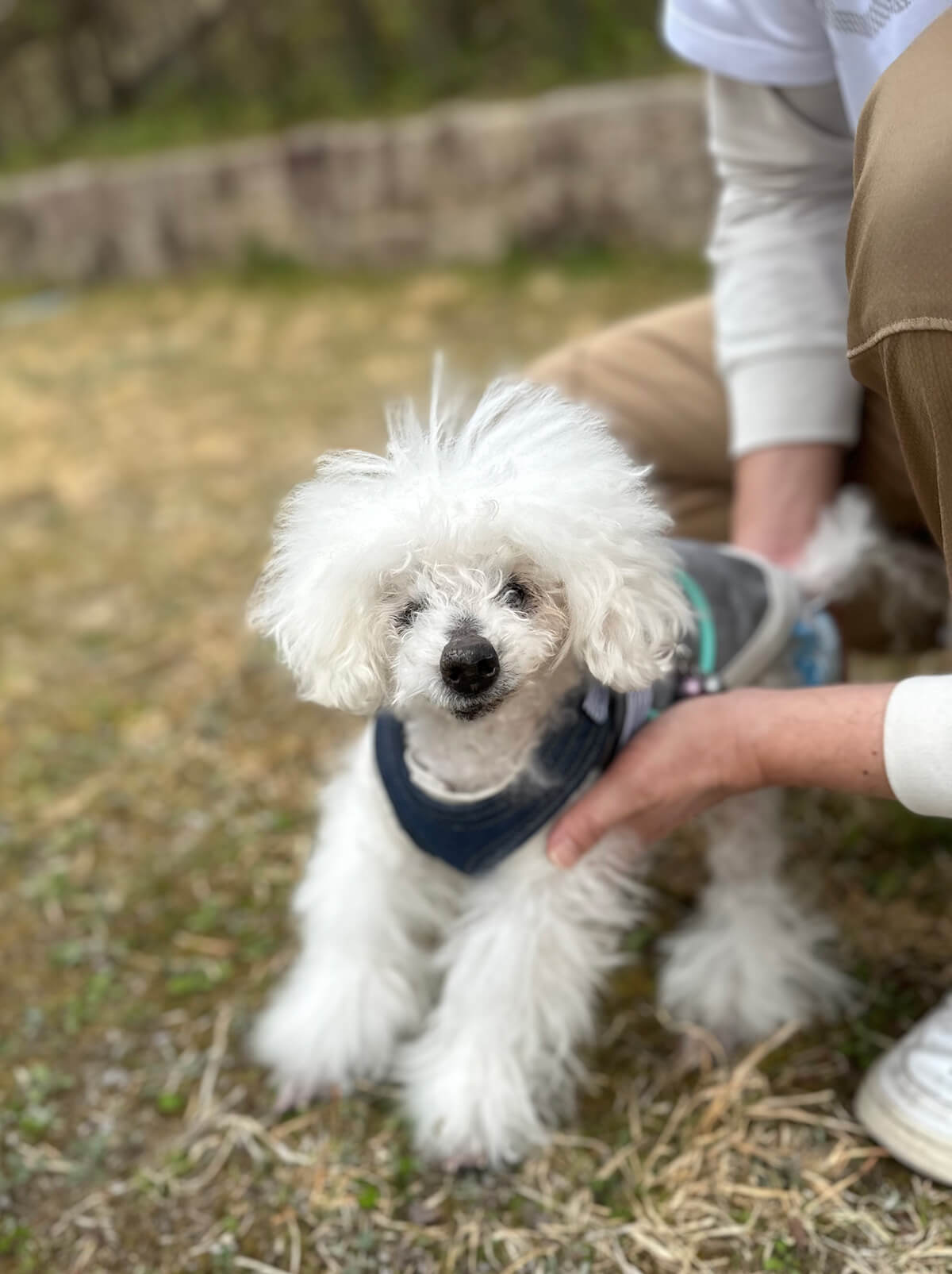 目が見えなくなってから車を嫌がるようになって、お散歩は近場ばかりですが、やっぱり自分の足で歩きたがるんですよね。