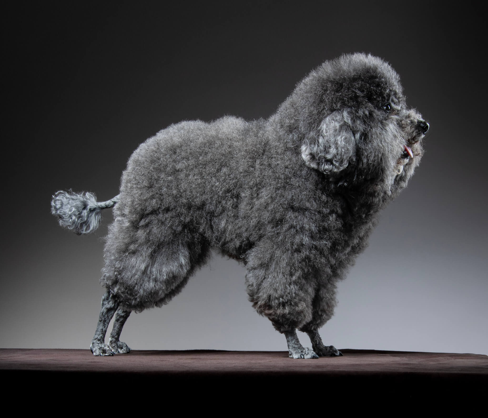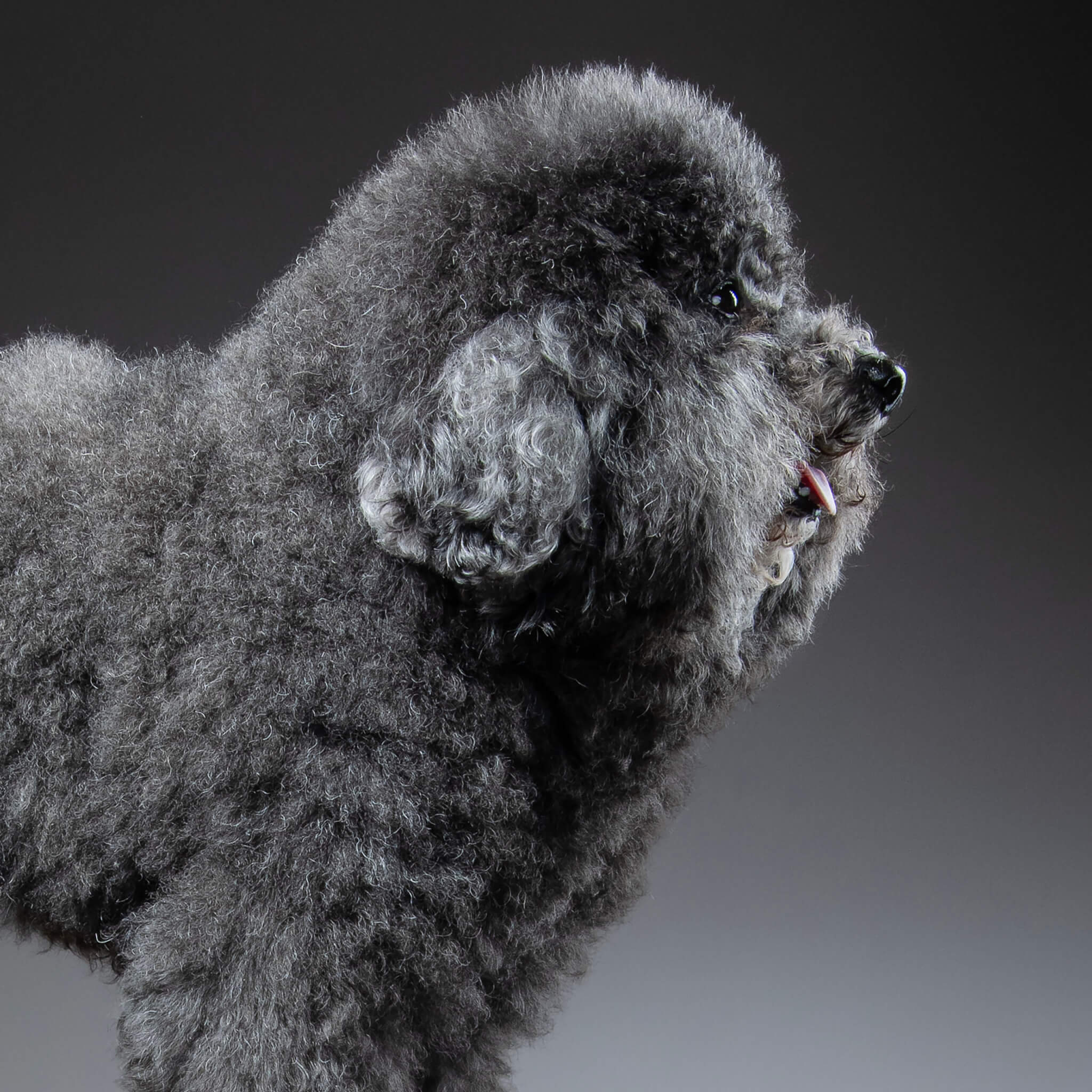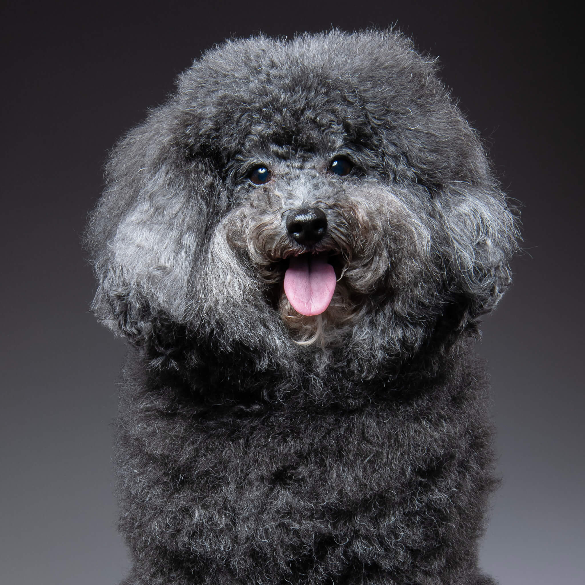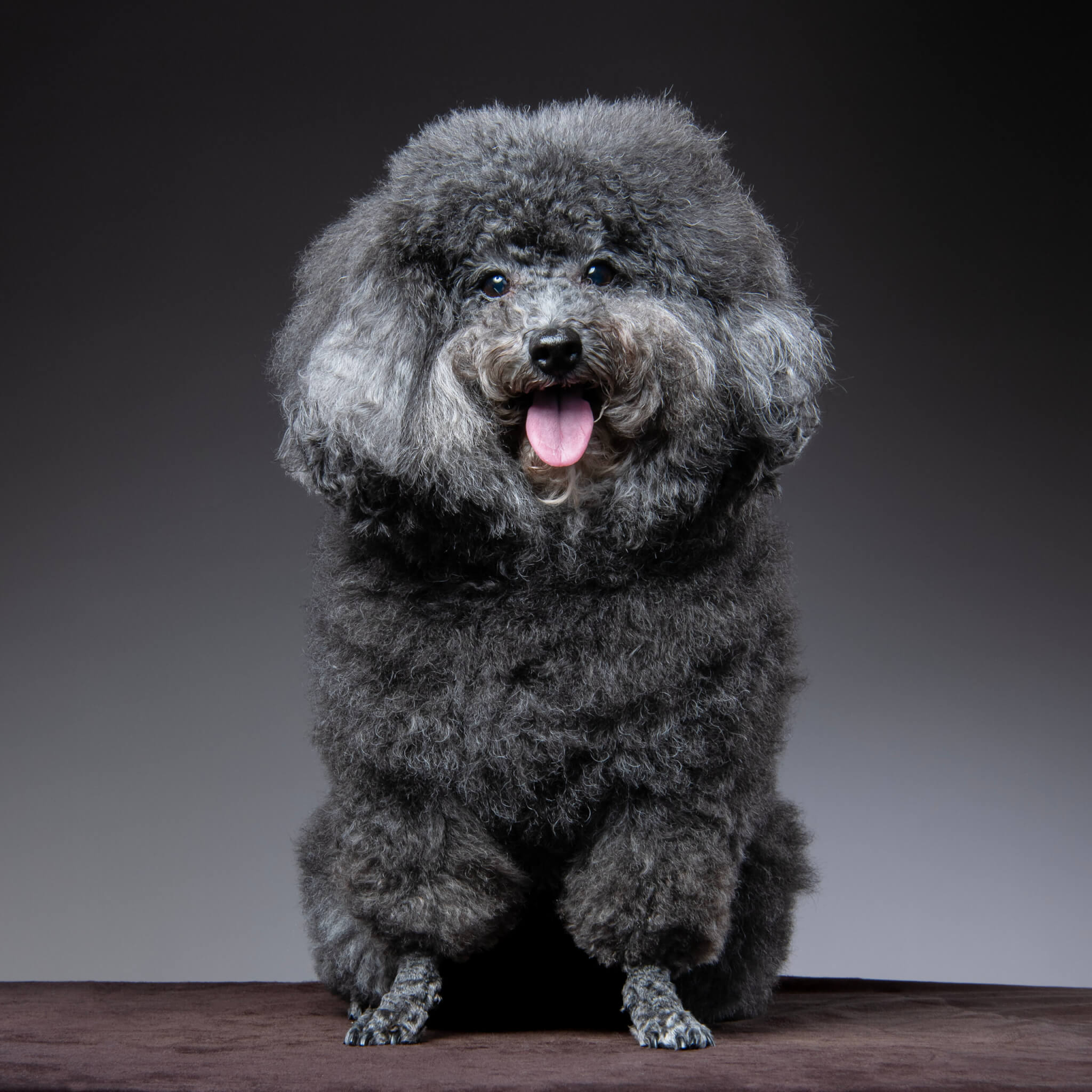 モコモコとした丸みのあるフォルムと、トイプードル特有の柔らかな毛質を活かしたヘアスタイルが魅力です。