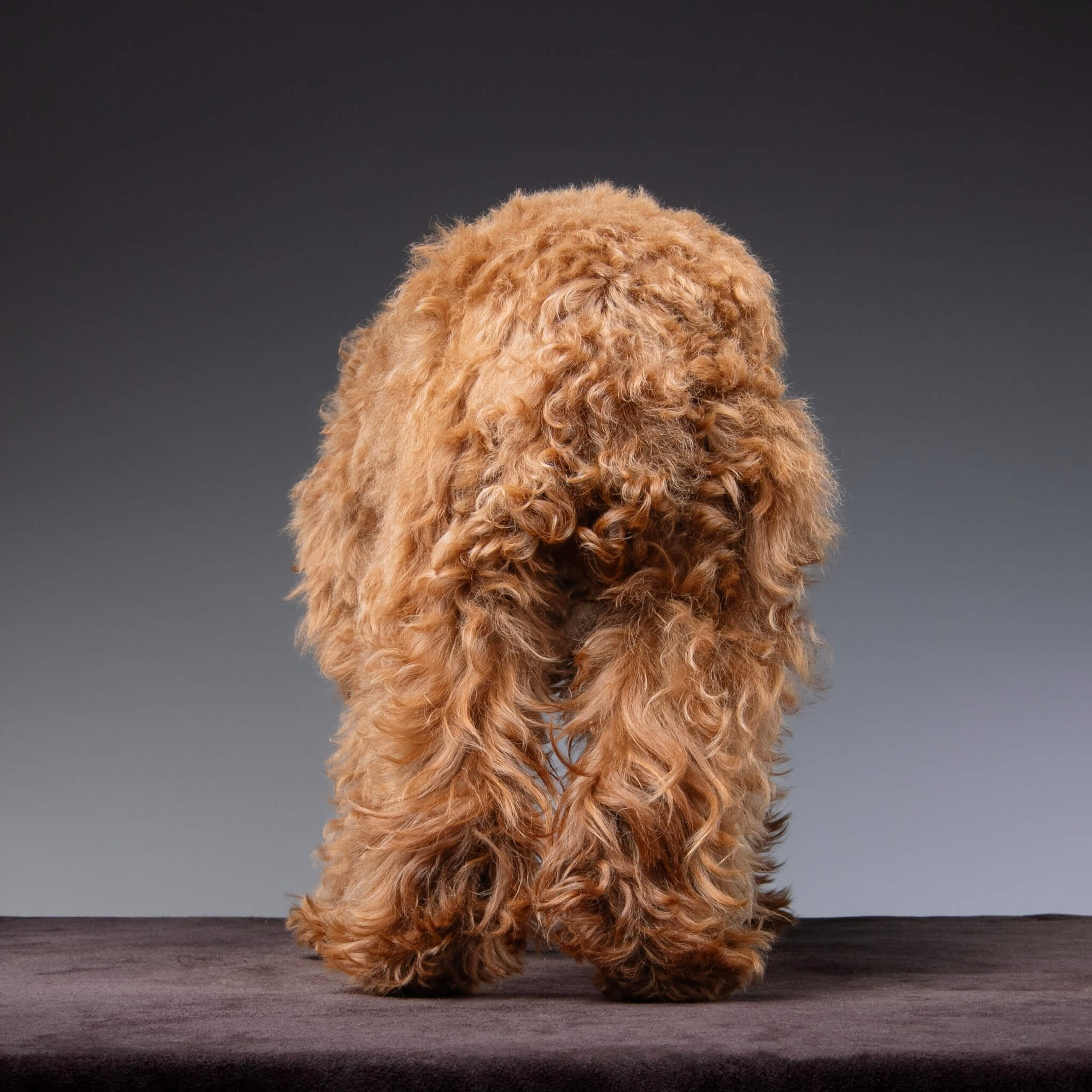 全身を短めに揃え、顔まわりをふんわりと丸くカットし、まるでぬいぐるみのような愛らしいシルエットに。